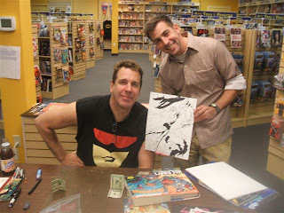 Come October 2008. I got a chance to meet Steve Rude at a comic signing at Westfield Comics in Madison. I just went to say hello and to maybe have him sign a copy of one of my World's Finest issues. Surprisingly, not a lot of people were there. But, Steve was gracious nonetheless and shared stories of his career, as well as drawing techniques. We got to talking and the subject of my cultish fascination with Aquaman came up. Mr. Rude, thought for a moment and realized that he had never drawn the King of the Seas before! Using the cover of a "Showcase" collection of Aquaman stories as reference he hunkered down and put together this amazing drawing!